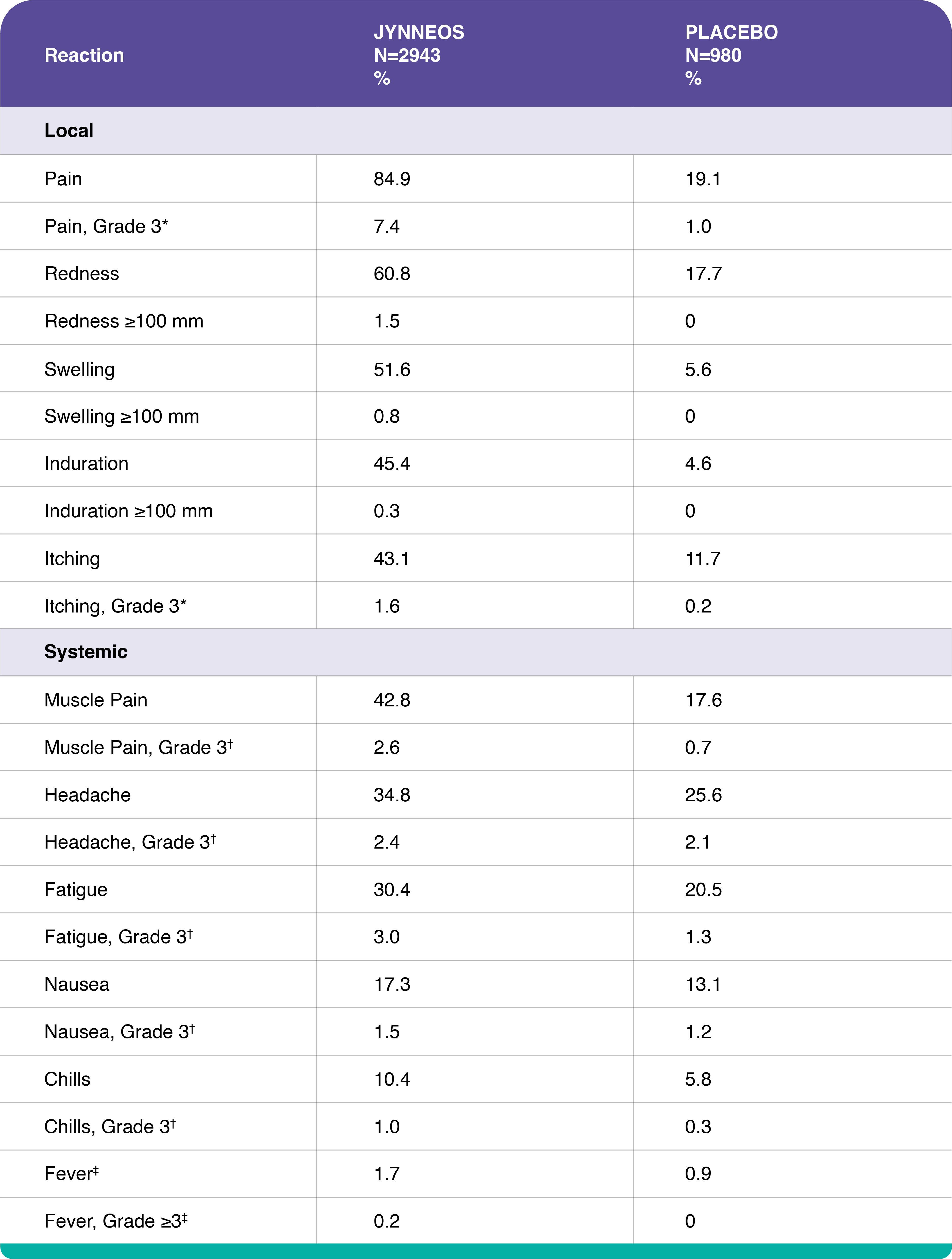 • The frequencies of local and systemic reactions reported are similar to those reported in clinical trials16
